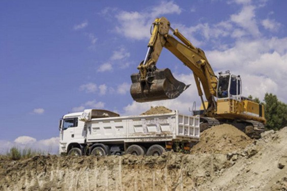 挖掘机装载卸荷卡车在建筑...