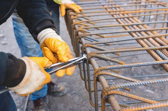 建筑工地 的工人正在笼钢...