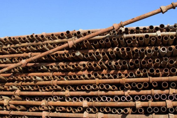 在一个建筑工地的钢管组件...