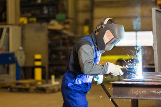 钢结构建筑工人焊接金属零...