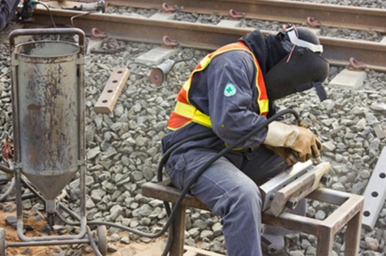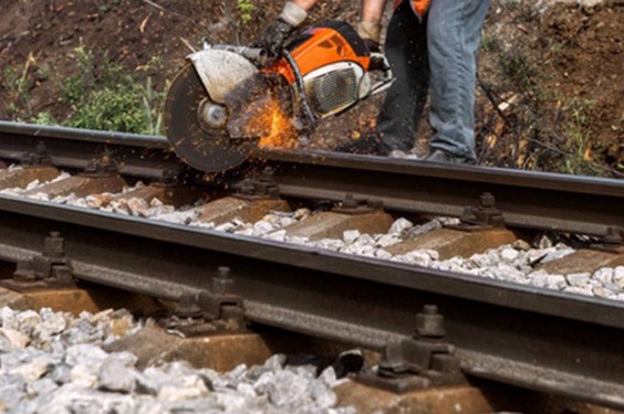 工人正在 切割轨道为维护