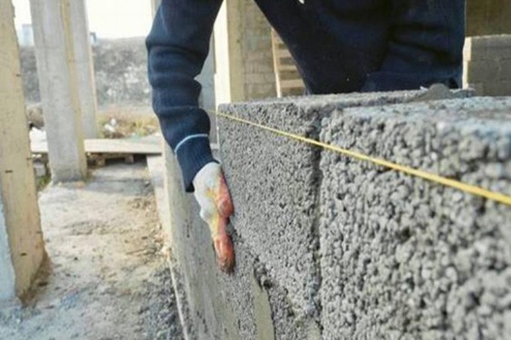 建筑工地工人建造砖墙特写...